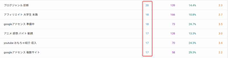 - 検索上位1ページに入っているキーワードが5個ぐらいある