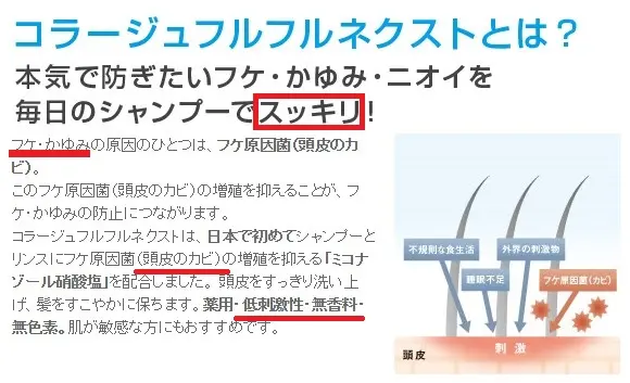 すると、「頭皮のカビ」「すっきり」「低刺激」「敏感肌」などのキーワードを販売ページに発見することができました。